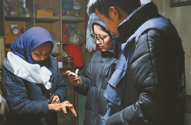 圖為西藏星光社會(huì)工作服務(wù)中心工作人員在當(dāng)雄縣公塘鄉(xiāng)巴嘎當(dāng)村,入戶走訪幫扶轄區(qū)困境老人。記者 格桑倫珠 攝