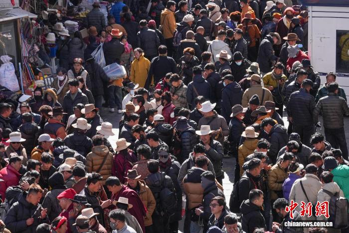 1月27日,藏歷新年將至,拉薩街頭年味漸濃。城區(qū)街巷燈籠高掛,市民忙著采購(gòu)酥油花、香布、切瑪盒、吉祥羊頭、藏文春聯(lián)等特色年貨,各式新年好物琳瑯滿目,處處洋溢著喜慶祥和的節(jié)日氛圍,人們以傳統(tǒng)方式迎接新年到來(lái)。圖為拉薩沖賽康市場(chǎng)前來(lái)選購(gòu)年貨的民眾絡(luò)繹不絕。貢確 攝
