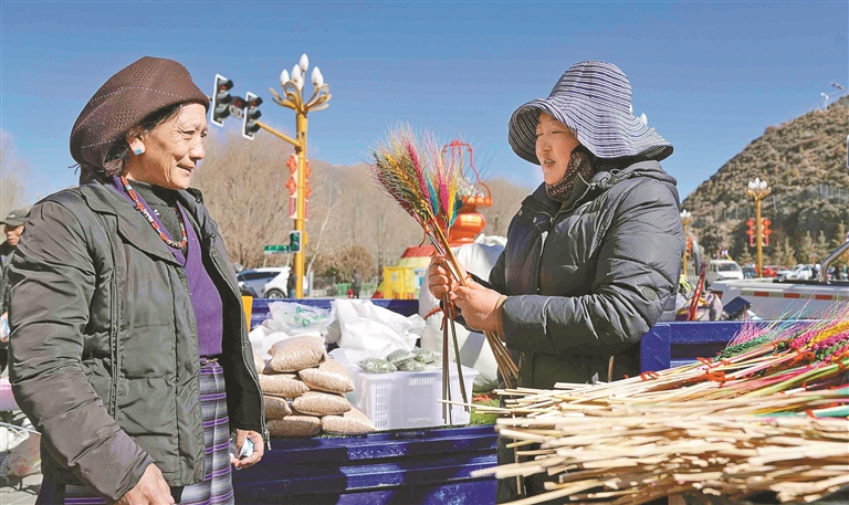 隨著春節(jié)和藏歷新年的臨近,墨竹工卡縣年貨市場(chǎng)進(jìn)入“紅火模式”,五彩“塔腳”、吉祥切瑪盒、酥脆卡塞等年貨琳瑯滿目,甜蜜糖果、新鮮水果等商品一應(yīng)俱全,各族群眾穿梭其間精心挑選,處處洋溢著熱鬧的節(jié)日氛圍。