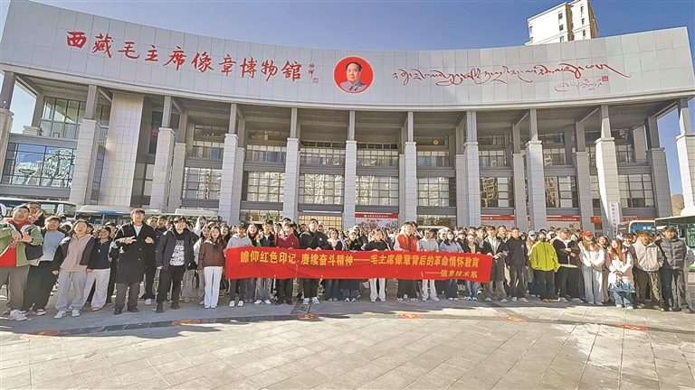 拉薩師范學(xué)院學(xué)生在西藏毛主席像章博物館門(mén)口合影。記者 劉斯宇 攝