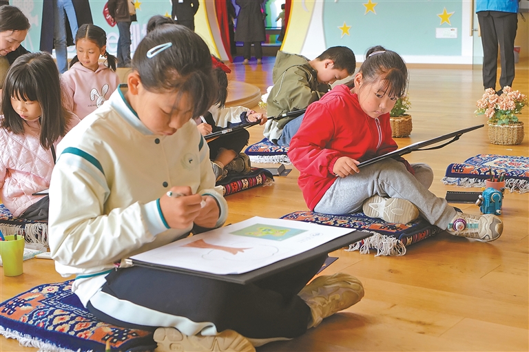 市民在西藏博物館參與文創(chuàng)畫作活動。記者 次仁平措 攝
