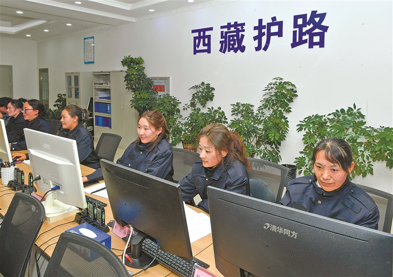 西藏自治區(qū)綜治委鐵路護(hù)路聯(lián)防辦公室工作人員堅守崗位,做好鐵路治安防控、隱患排查整治等工作。記者 丹增群培 攝
