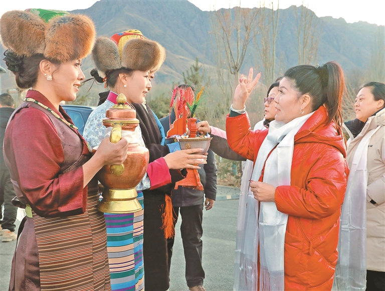 “藏族同胞身著盛裝,敲鑼打鼓,熱情地迎接八方來客,還精心準(zhǔn)備了當(dāng)?shù)靥厣朗澈偷氐婪沁z展示,大家內(nèi)心滿是激動(dòng)?!蓖醴颊f,“我們這次打破了傳統(tǒng)的旅游模式,不入住酒店,而是走進(jìn)藏族同胞家中,深切感受著各民族一家親的溫暖。祝愿祖國繁榮昌盛,也祝山南市全體人民馬年大吉,扎西德勒!”