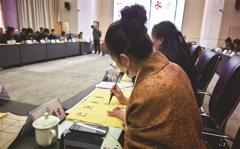 婦女代表在筆墨書香中感受中華優(yōu)秀傳統(tǒng)文化魅力。文/圖 記者 婁夢琳