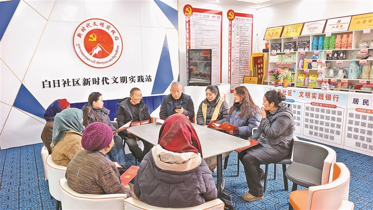 圖為志愿者向群眾宣講黨的惠民政策。記者 丹增平措 攝