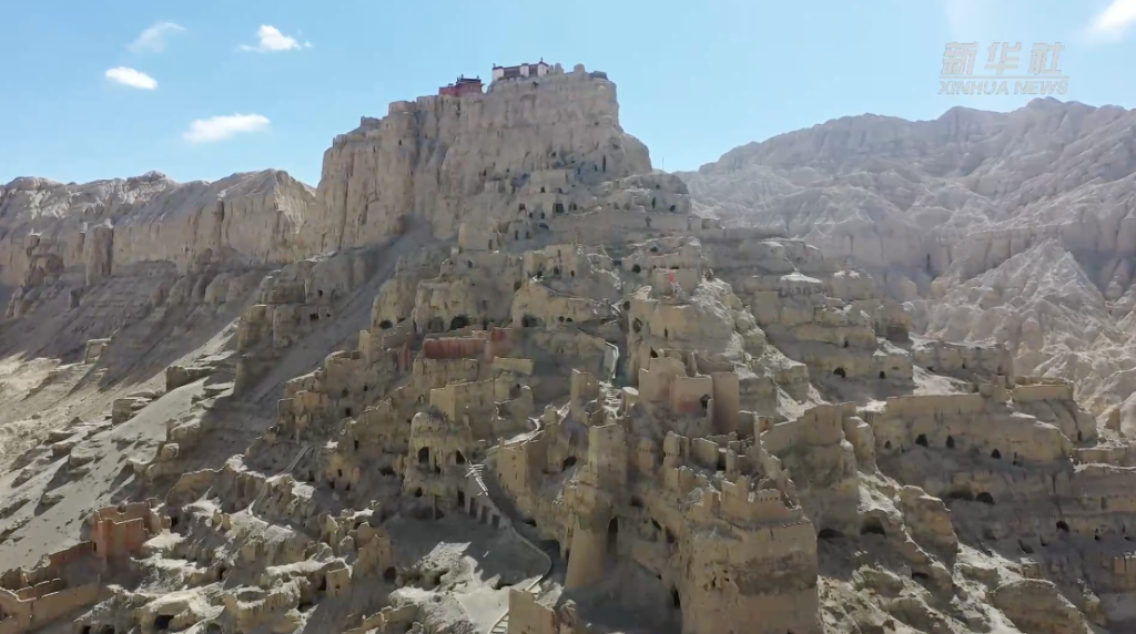 古格王國(guó)遺址位于西藏阿里地區(qū)札達(dá)縣境內(nèi),是國(guó)家級(jí)重點(diǎn)文物保護(hù)單位,曾是西藏地方割據(jù)政權(quán)古格王朝的中心。現(xiàn)存遺址依山勢(shì)而建,由300余座房屋、300余孔洞窟及2條地下通道等組成,總占地面積18萬(wàn)平方米,相對(duì)高差175米。古格王國(guó)遺址為研究西藏歷史,尤其是藏族古代建筑史提供了重要實(shí)物資料。圖為鳥瞰西藏阿里地區(qū)古格王國(guó)遺址。(無(wú)人機(jī)照片)