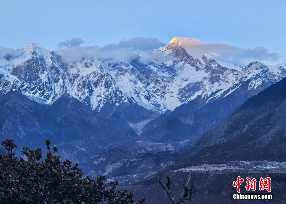 4月1日,西藏林芝市米林市境內(nèi)的南迦巴瓦峰下,桃花盛開(kāi),吸引了眾多游客前來(lái)游玩。南迦巴瓦峰被譽(yù)為“眾山之父”,海拔7782米,其山頂終年積雪,而山腳下則是郁郁蔥蔥的樹(shù)木和盛開(kāi)的桃花,形成了一幅獨(dú)特的垂直自然景觀。圖為南迦巴瓦峰顯露出“日照金山”的美景。