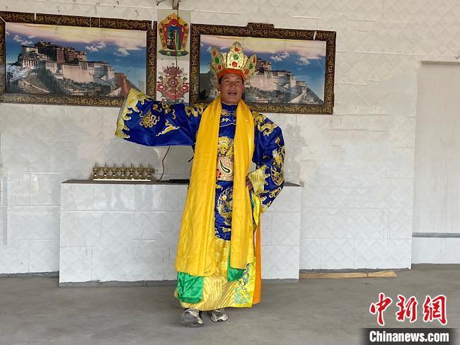 圖為完代才讓在外木村戲臺(tái)出演。 宋子昕 攝