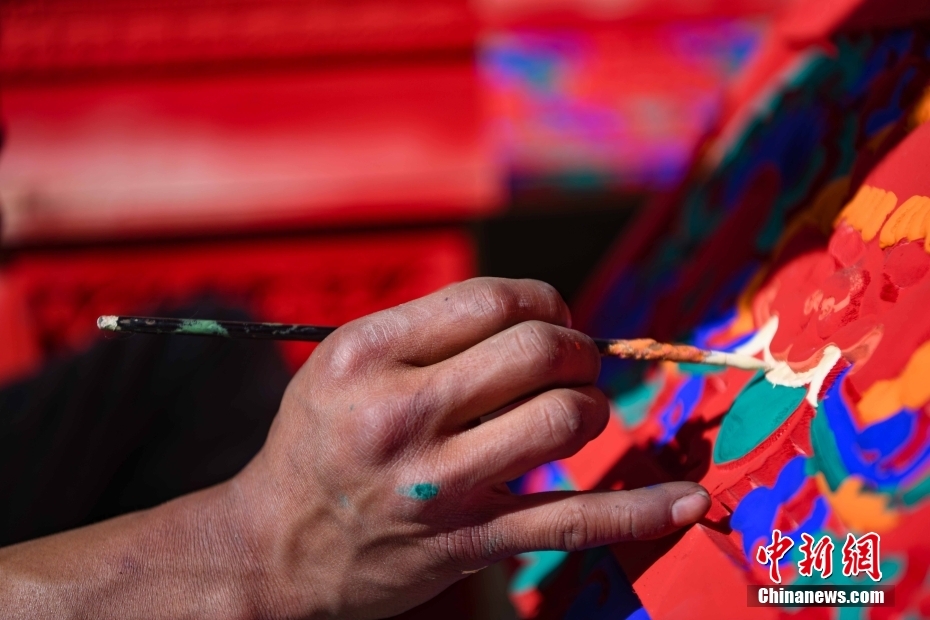 12月28日,西藏拉薩堆龍德慶區(qū),古俗民族傳統(tǒng)手工藝發(fā)展專業(yè)合作社員工在家具上繪制藏式裝飾。據(jù)悉,該合作社以繪畫、木工、縫紉為主,承接傳統(tǒng)手工藝方式制作家具、房子裝修、唐卡繪畫、旅游產(chǎn)品、文物建筑維修等工作。自2018年合作社成立至今,帶動就業(yè)共60余人。 中新社記者 貢嘎來松 攝