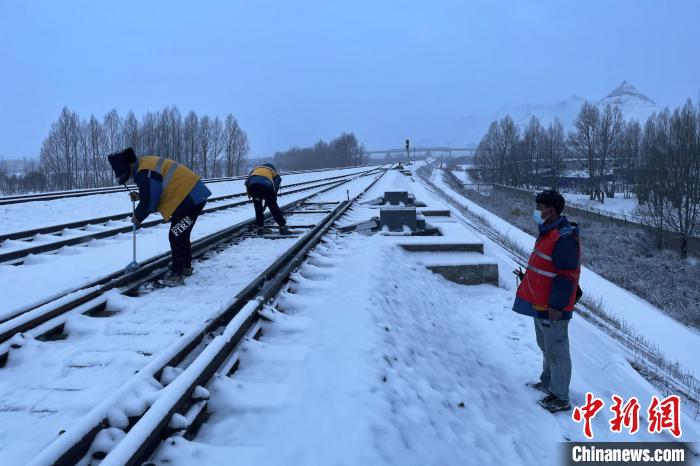 迎戰(zhàn)大雪 西藏日喀則鐵路職工清掃積雪保障拉日鐵路運營