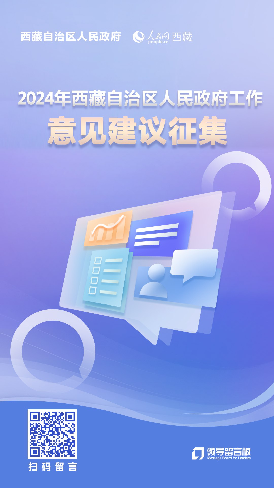 為科學(xué)謀劃明年西藏自治區(qū)政府工作,起草好2024年自治區(qū)《政府工作報告》,從2023年11月10日至12月20日,西藏自治區(qū)人民政府聯(lián)合人民網(wǎng)依托“領(lǐng)導(dǎo)留言板”開通政府工作征求意見欄,面向社會公開征集關(guān)于2024年政府工作的意見建議。