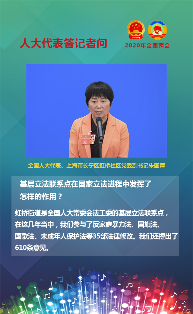 虹橋街道是全國(guó)人大常委會(huì)法工委的基層立法聯(lián)系點(diǎn),在這幾年當(dāng)中,我們參與了反家庭暴力法、國(guó)旗法、國(guó)歌法、未成年人保護(hù)法等35部法律修改。我們還提出了610條意見(jiàn)。