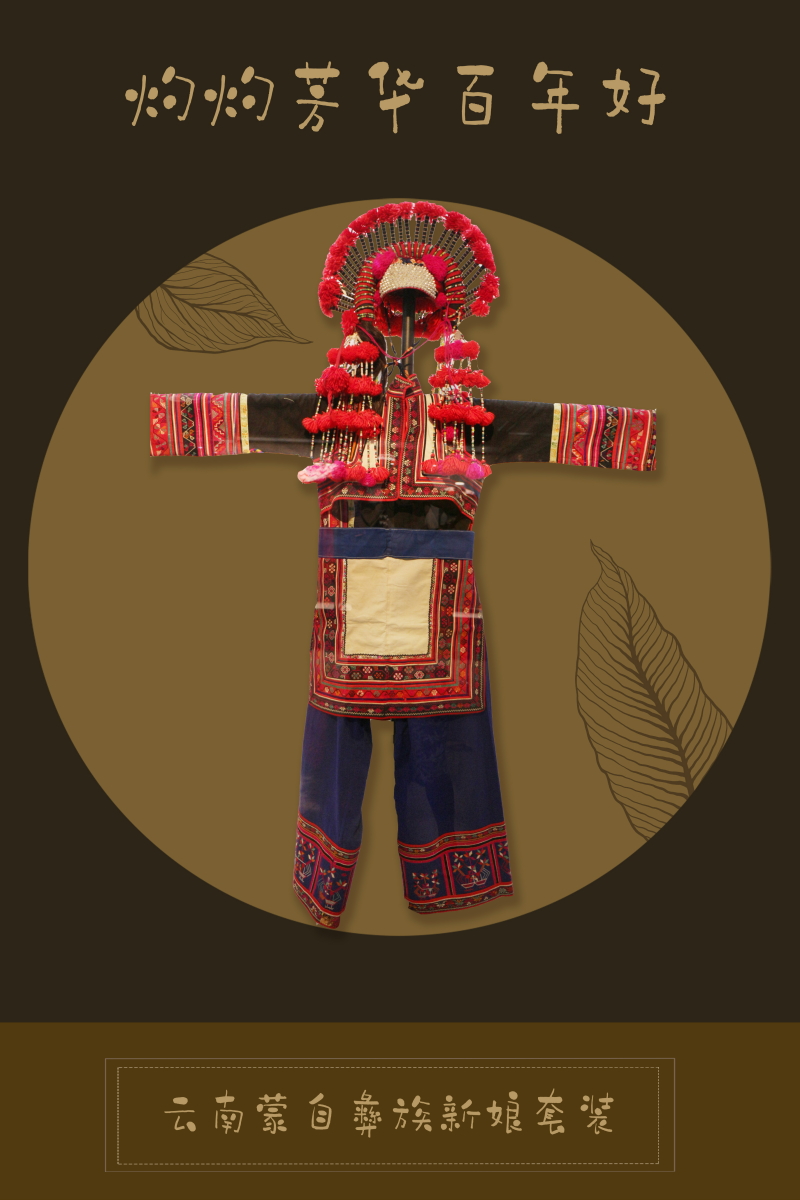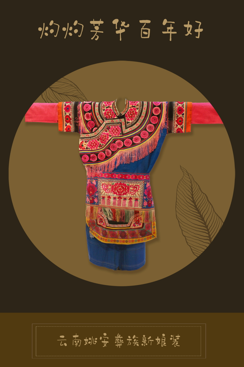 云南省美麗的山川、多樣的民族文化,給予這里的人們無(wú)限的想象力和豐富的創(chuàng)作靈感,各民族把自己對(duì)歷史過(guò)往的記憶、對(duì)大自然的熱愛、對(duì)美好事物的感受、對(duì)社會(huì)道德的崇尚等等,用服飾文化這一特殊語(yǔ)言表現(xiàn)出來(lái)。其中,民族婚禮服飾種類繁多,文化底蘊(yùn)深厚,每一套服裝都反映出云南少數(shù)民族質(zhì)樸的審美情趣與深厚的生活哲學(xué)。