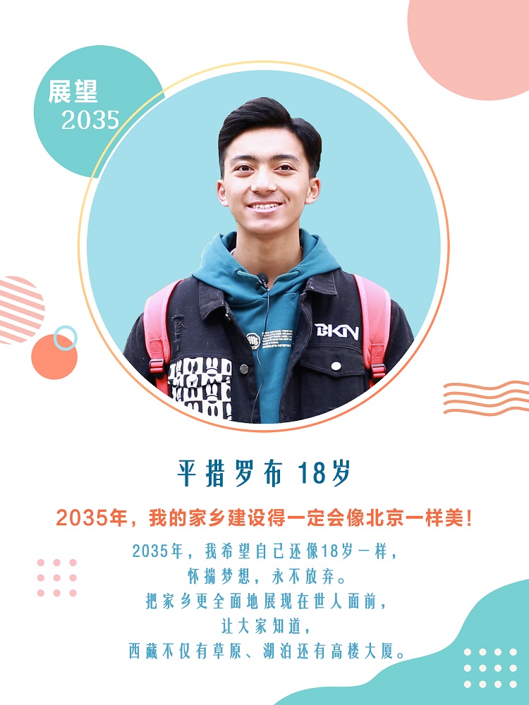 黨的十九屆五中全會提出,到2035年基本實(shí)現(xiàn)社會主義現(xiàn)代化。你期待2035年的到來嗎?在你心中,2035年的中國會是什么樣?未來15年,你有哪些大規(guī)劃、小目標(biāo)?中國西藏網(wǎng)策劃推出系列海報,本期帶你走進(jìn)少年們關(guān)于2035年的展望與暢想。