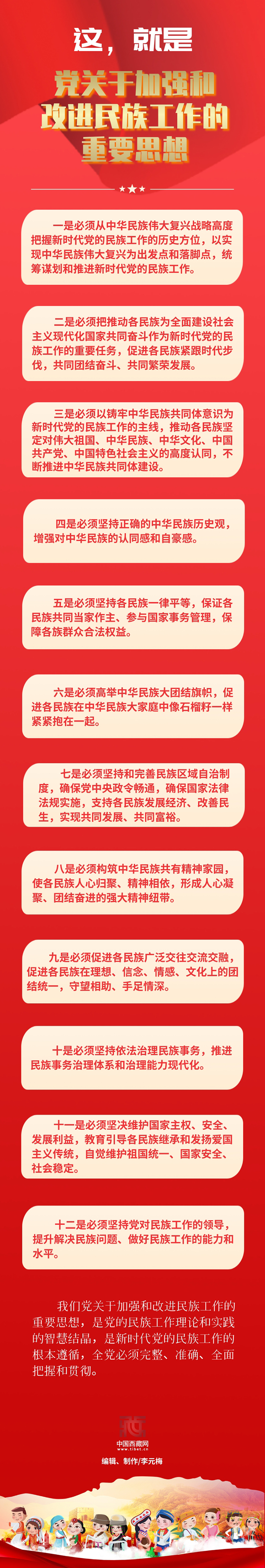 我們黨關(guān)于加強(qiáng)和改進(jìn)民族工作的重要思想,是黨的民族工作理論和實(shí)踐的智慧結(jié)晶,是新時(shí)代黨的民族工作的根本遵循,全黨必須完整、準(zhǔn)確、全面把握和貫徹。中國(guó)西藏網(wǎng)帶您一圖讀懂什么是“黨關(guān)于加強(qiáng)和改進(jìn)民族工作的重要思想”。(中國(guó)西藏網(wǎng) 編輯、制作/李元梅)