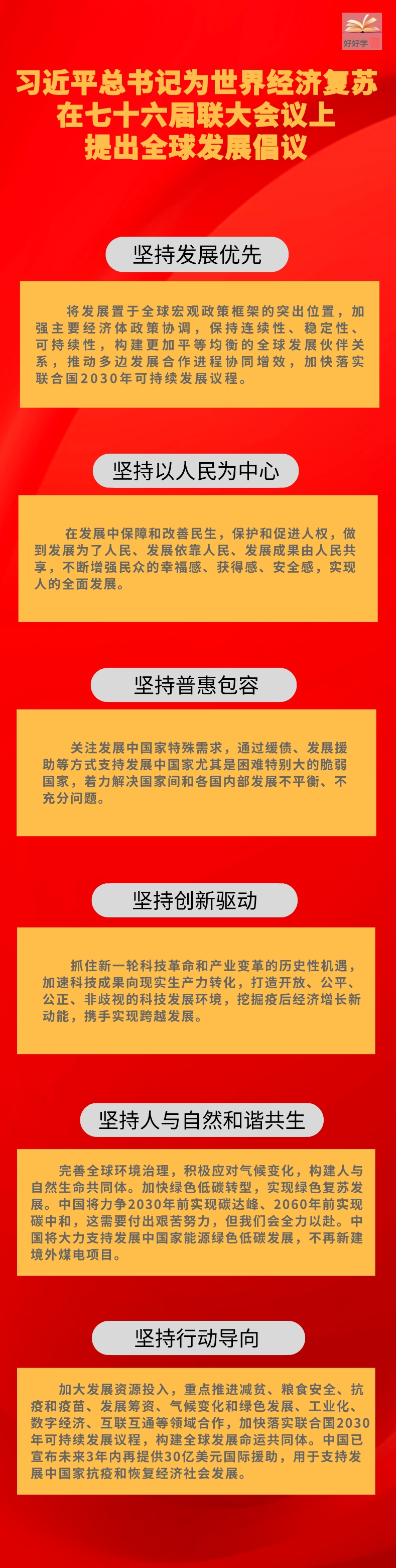長圖|習(xí)近平總書記為世界經(jīng)濟(jì)復(fù)蘇在七十六屆聯(lián)大會議上提出全球發(fā)展倡議