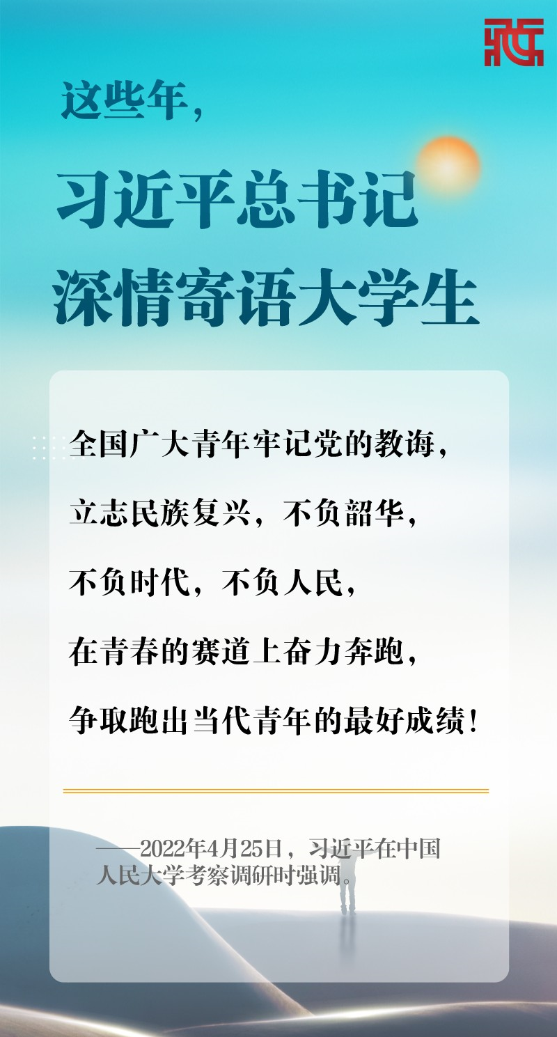 在五四青年節(jié)即將到來之際,中共中央總書記、國家主席、中央軍委主席習(xí)近平4月25日上午來到中國人民大學(xué)考察調(diào)研。習(xí)近平總書記一直特別關(guān)心大學(xué)生們的學(xué)習(xí)和成長,曾多次走到大學(xué)生中間,同他們談人生、話理想。