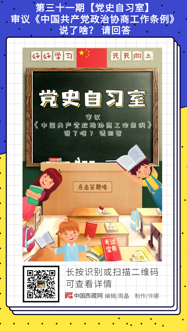 第三十一期【黨史自習室】審議《中國共產(chǎn)黨政治協(xié)商工作條例》說了啥? 請回答