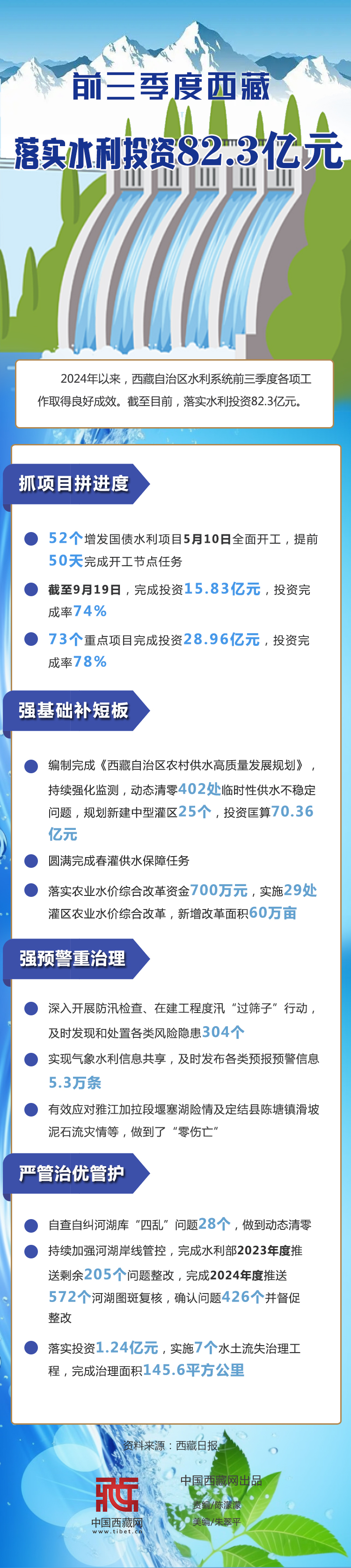 一圖了解:西藏2024年前三季度落實水利投資82.3億元