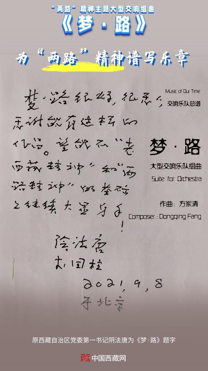 創(chuàng)作團(tuán)隊(duì)三次深入西藏、四川、青海等省區(qū)市的二十多個(gè)“兩路”相關(guān)歷史地域,拜訪數(shù)十位民族民間器樂演奏、聲樂演唱、藏戲表演藝術(shù)家和國(guó)家級(jí)非物質(zhì)文化遺產(chǎn)傳承人,對(duì)藏族風(fēng)格音樂素材進(jìn)行詳盡細(xì)致的采集,從中國(guó)愛樂樂團(tuán)演奏家們的傾情演奏,到四川省甘孜藏族自治州金剛寺大殿采聲,從錄制藏族姑娘銀鈴天籟般的嗓音,到83歲高齡的國(guó)家級(jí)非物質(zhì)文化遺產(chǎn)傳承人的獻(xiàn)唱山歌……《夢(mèng)·路》讓大型交響樂和原生態(tài)聲音融合、碰撞、組合,用音符刻畫了中華筑路英雄馳騁世界屋脊的偉大樂章。(中國(guó)西藏網(wǎng) 編輯、制作/王茜 供圖/方崠清)