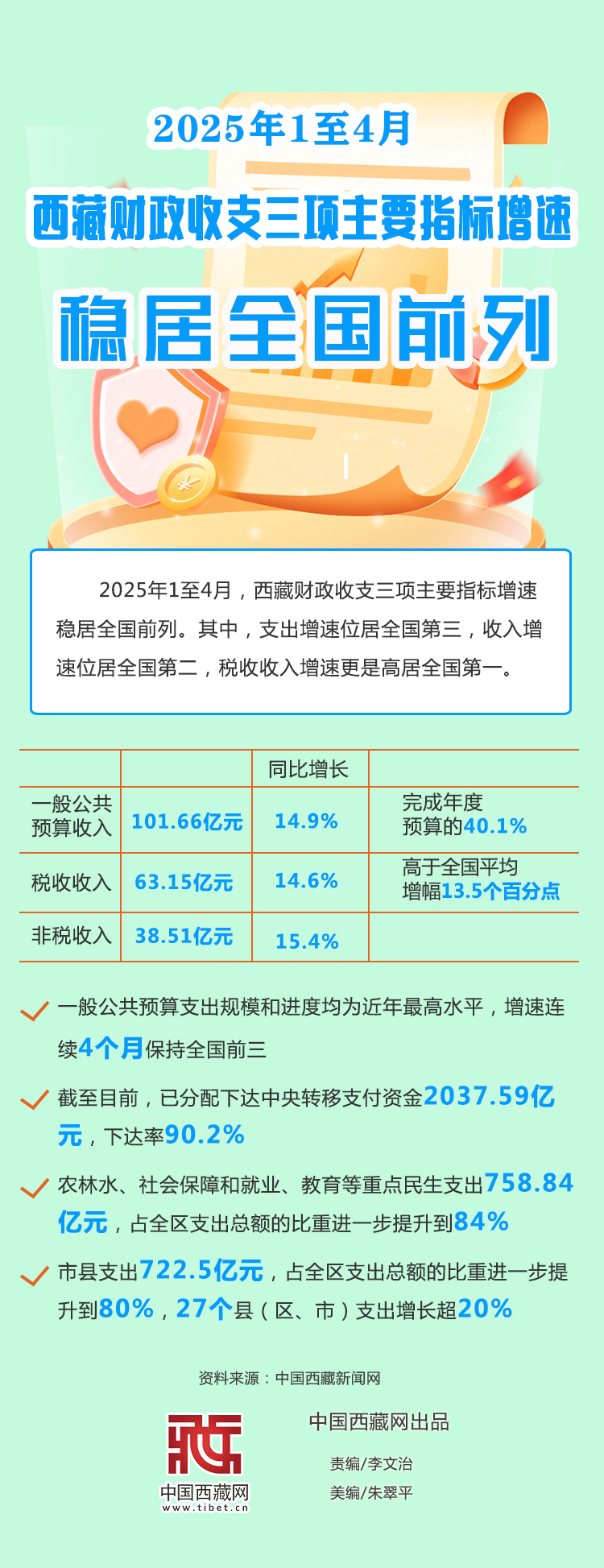 海報|2025年1至4月西藏財政收支三項主要指標(biāo)增速穩(wěn)居全國前列