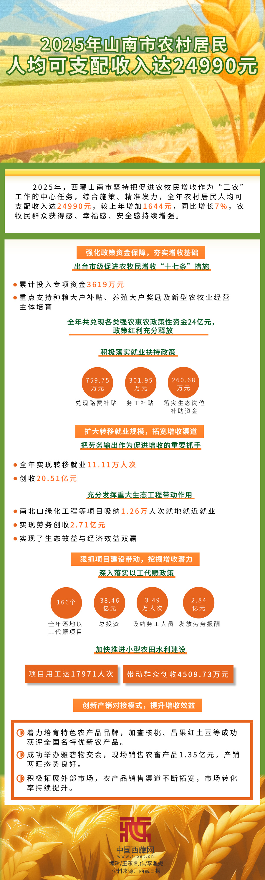 海報|2025年山南市農(nóng)村居民人均可支配收入達(dá)24990元