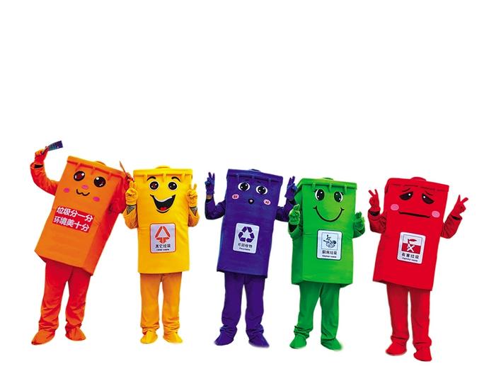 5個(gè)宣傳垃圾分類(lèi)的卡通人偶。本版資料圖片均由記者 央金 攝