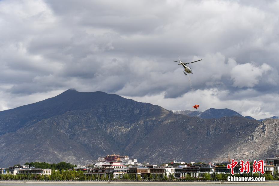 6月9日,西藏拉薩,拉薩雪鷹通航直升機從機場起飛前往造林點。當日,西藏自治區(qū)林業(yè)和草原局在拉薩市組織開展首次飛播造林工作,此次飛播造林共設計9個飛播作業(yè)區(qū),其中拉薩市7個,山南市2個,由拉薩雪鷹通用航空公司負責飛機播種。設計飛播造林面積21.8萬畝,設計飛機播種沙棘、砂生槐等樹(草)種約119.3噸。中新社記者 何蓬磊 攝
