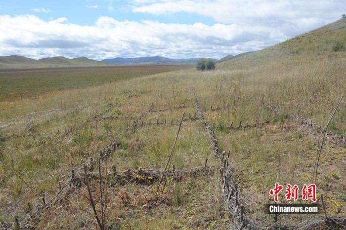 走進四川省阿壩州若爾蓋縣轄曼鎮(zhèn)西倉村治沙點,山坡上巨大的“棋盤”格外醒目??h林草局生態(tài)修復股助理工程師涂勝介紹,這是用于治理草原沙化的高山柳沙障。
