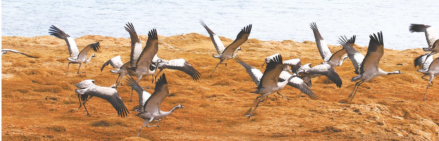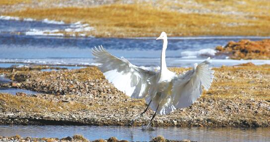 四月中旬的班德湖雪覆冰封,成千上萬(wàn)只斑頭雁棲息在湖心島嶼,它們用喙銜來(lái)草枝、莖葉、干藻、絨羽和碎布,營(yíng)造御寒的巢穴。江源,是鳥(niǎo)類(lèi)的故園,凍土之上的酷寒之地,成群的雌雁用自己的體溫孵化雛鳥(niǎo),它們啾啾的鳴叫回蕩在無(wú)際的曠野,這傲立天地間的“驚鴻照影”,不由得我們不為之嘆服!