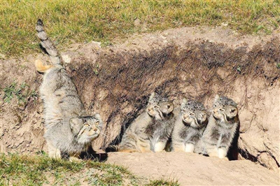 早上8時左右,五六十米外的巢穴中有了動靜,1只兔猻媽媽帶著3只小兔猻出來覓食,和諧的場景沒持續(xù)多久就被遠處虎視眈眈而來的藏狐打破了。兔猻媽媽警惕地盯著藏狐,發(fā)出短促的警報聲,3只小兔猻迅速奔回洞穴,攝影師順勢按下快門,《當媽媽說跑步前進》由此而來。