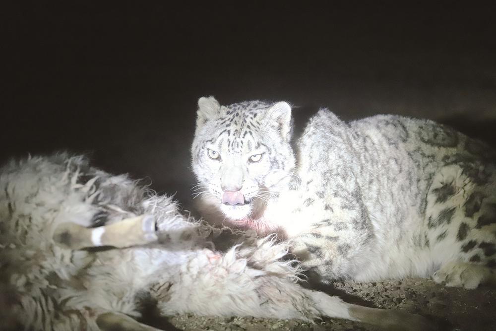 生態(tài)管護員夜拍雪豹下山捕食