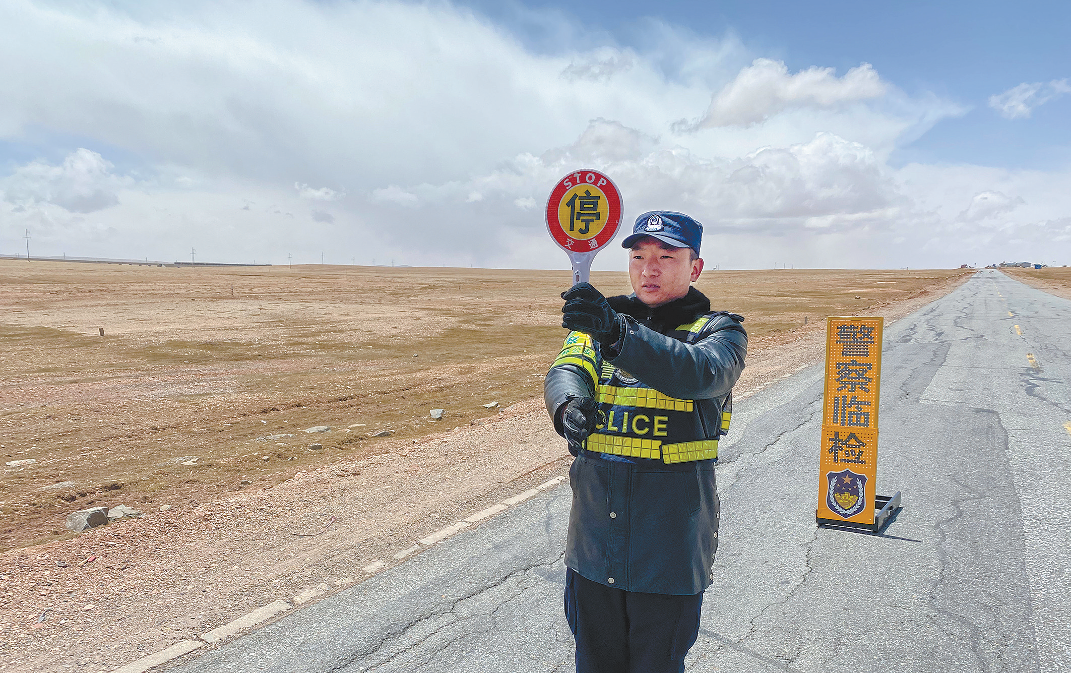 可可西里管理局五道梁保護站隊員扎西桑周,為藏羚羊安全穿越青藏線保駕護航。