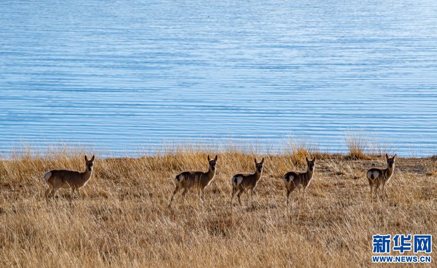 這是1月10日拍攝的羊卓雍錯岸邊的藏原羚。新華社記者 孫非 攝