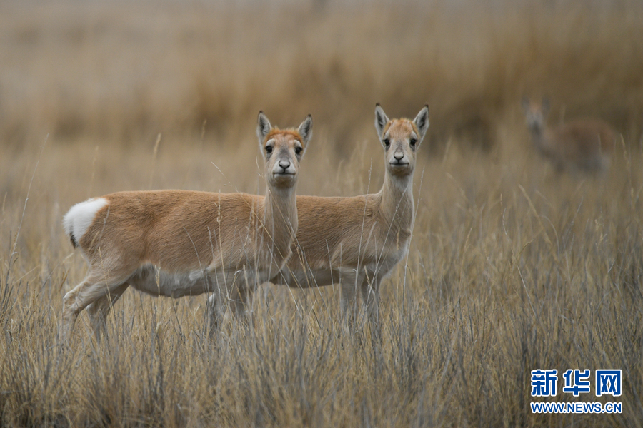 在青海湖特護(hù)區(qū)內(nèi)活動的普氏原羚。新華網(wǎng) 潘彬彬 攝