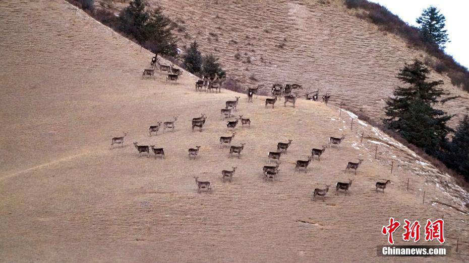 2月5日,在祁連山國家公園甘肅南段發(fā)現近百只野生馬鹿種群。 吳生文 攝