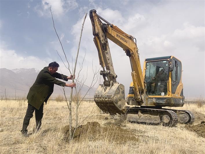 死了那么多樹,為什么還在堅(jiān)持?“那幾年,在這里隨手捧起一把黃土,還會(huì)沙化。我必須堅(jiān)持下來。”索朗羅布說。2015年春天,索朗羅布再次貸款40余萬(wàn)元購(gòu)買了一臺(tái)挖掘機(jī),準(zhǔn)備修建水渠和挖坑。同年3月,索朗羅布又一次獨(dú)自種樹苗,母親卓瑪央金心疼壞了,于是帶著村里姐妹們前來幫忙。不僅如此,她們還帶來了防止草原鼠啃食樹根的土方法,用塑料瓶圍著樹根包一圈,既能防止草原鼠搞破壞,還能節(jié)省成本。