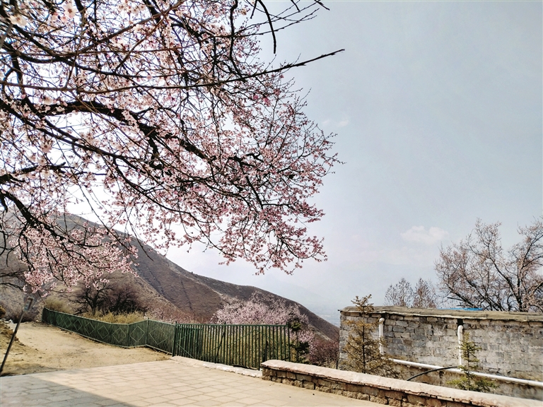“人間四月芳菲盡,山寺桃花始盛開(kāi)?!崩_帕崩崗寺海拔3900米,周邊擁有許多老桃樹(shù),四月桃花開(kāi)得極盛,印證了詩(shī)句里的景象,美不勝收。帕崩崗,藏語(yǔ)的意思是“巨石上的宮殿”,位于遠(yuǎn)離拉薩市區(qū)喧鬧的北郊山麓。這里不僅可以俯瞰整個(gè)拉薩城,也是被人們所忽略的“世外桃源”。如今帕崩崗寺的桃花盛開(kāi)了,沿著山間道路,看到桃花數(shù)量越來(lái)越多,有的含苞待放,好像下一刻就會(huì)怒然開(kāi)放;有的悄然綻放,賦予整個(gè)世間春季的浪漫。