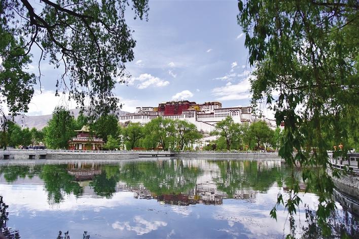 記者來到布達拉宮廣場,看到有很多游客在湖邊拍照,湖面清澈得像一面鏡子,倒映著布達拉宮。這么美的畫面,小編也忍不住用相機記錄下來與大家分享。