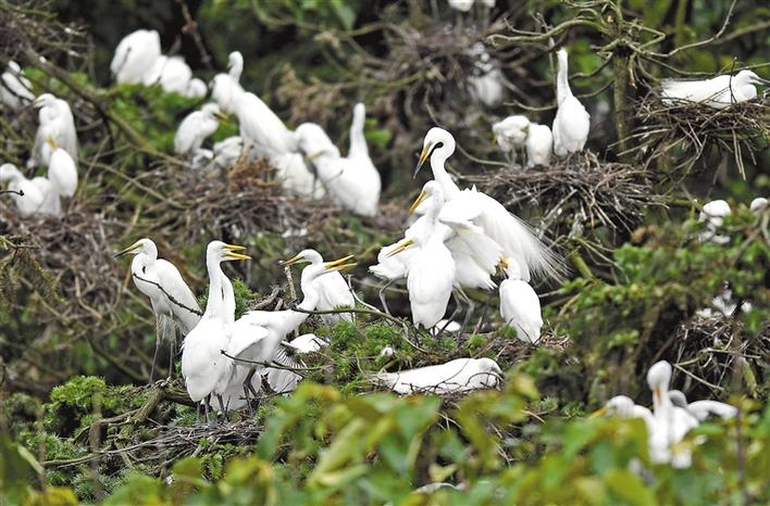 近期,在位于鄱陽湖畔的江西省南昌市新建區(qū)象山森林公園內(nèi),已安家筑巢的鷺鳥進(jìn)入孵化哺育旺季。象山森林公園有著“鷺鳥王國”的美譽(yù),每年都會吸引白鷺、蒼鷺、夜鷺等種類的鷺鳥飛抵棲息和繁衍后代。 白鷺在南昌市新建區(qū)象山森林公園內(nèi)棲息(5月18日攝)。新華社記者 萬象 攝