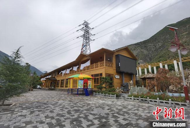 沿著村道蜿蜒而上,數(shù)十間采用藏族傳統(tǒng)木制結(jié)構(gòu)建筑與裝飾的房屋造型精致,環(huán)境典雅。這些房屋采用當(dāng)?shù)貍鹘y(tǒng)的石頭建筑形制,木屋用繁花綠樹做視野上的隔斷,又用十六座小橋彼此連通,似隔非隔,似連非連,既自成一體,又融會貫通,兼之流水潺潺,呈現(xiàn)出一派舒適宜人的田園畫卷。