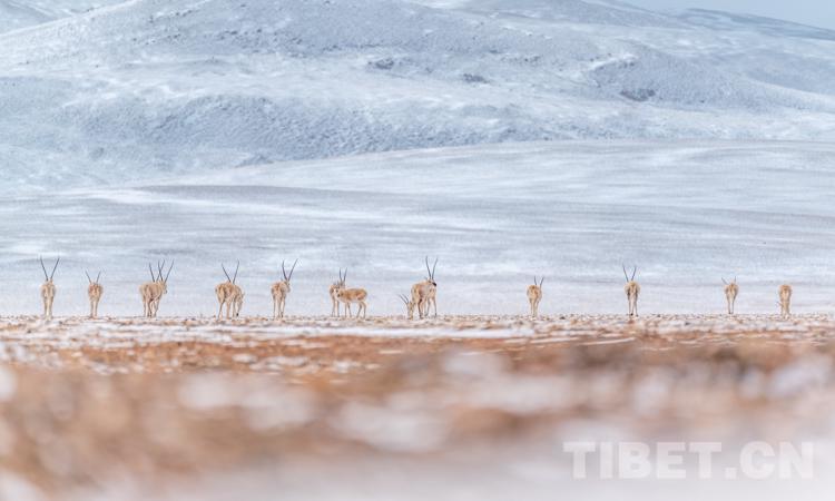圖為藏北羌塘草原之上的藏羚羊 攝影:趙耀