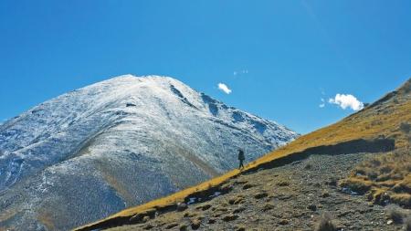 10月23日早晨,姜楠備好望遠鏡、相機、水,準備上山,同行的還有藏族同事扎拉和一位藏族牧民,任務(wù)是為云塔村3座小山上的紅外相機更換電池。這里的山并不高,但因高原氧氣稀薄,增添攀登難度。山間未完全融化的雪跡,也讓山路濕滑難走。