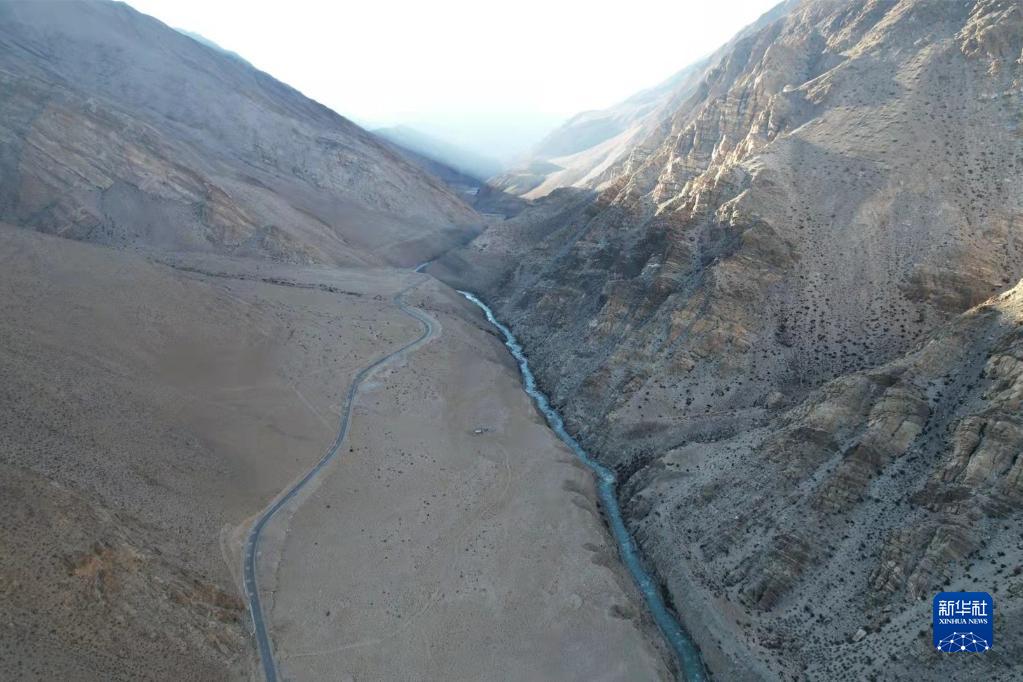 離開(kāi)參木達(dá)村,沿扎嘎曲逆流而上行駛約20分鐘后,公路旁的扎嘎曲開(kāi)始在峽谷中東西向蜿蜒而行,進(jìn)入整條河流的最狹窄處。記者在S516省道29公里處停車航拍,只見(jiàn)公路與河流像兩條平行的曲線,時(shí)遠(yuǎn)時(shí)近,向遠(yuǎn)方延伸。