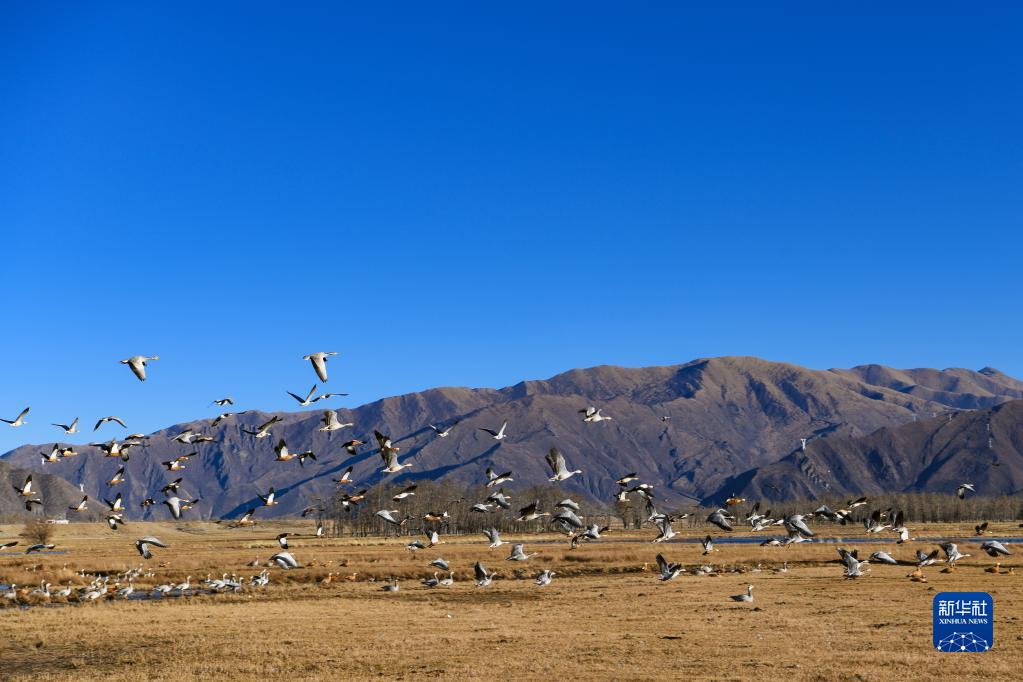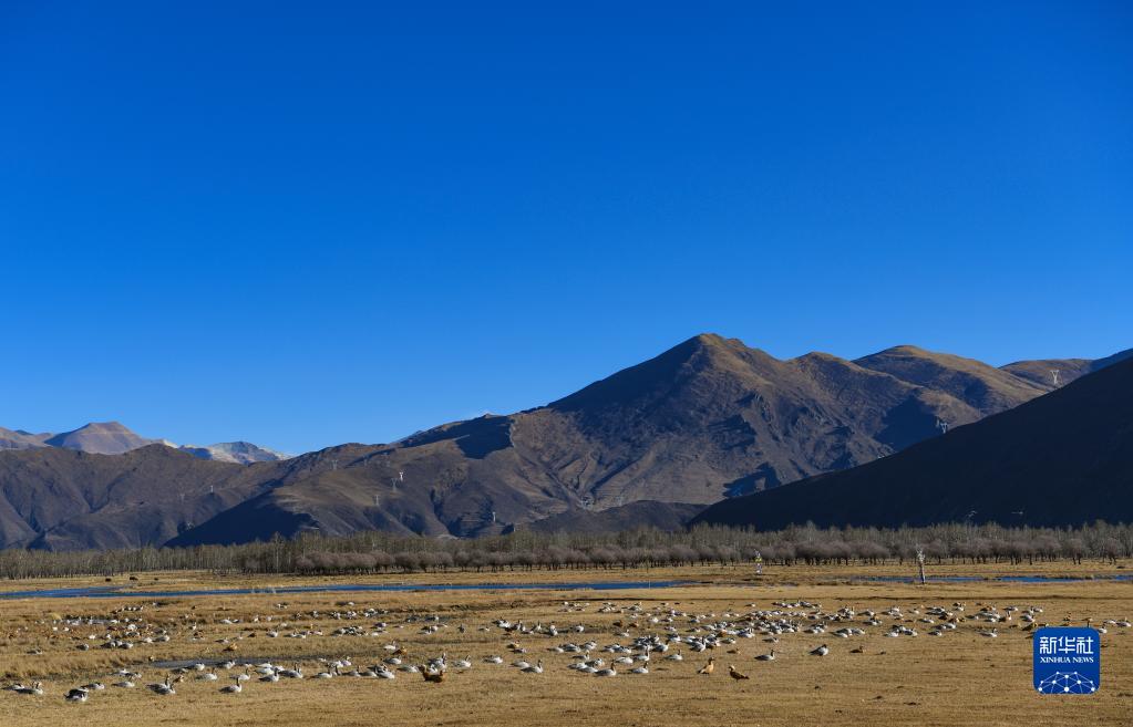 這是在唐嘎濕地拍攝的斑頭雁(12月11日攝,手機照片)。新華社記者 沈虹冰 攝