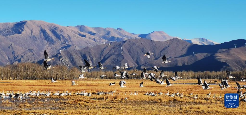唐嘎鄉(xiāng)位于拉薩市達孜區(qū)東北部,這里每年冬季都會迎來黑頸鶴、斑頭雁、赤麻鴨等候鳥。這些在此越冬的“客人”和周邊的田園、濕地共同構(gòu)成高原冬季美景。
