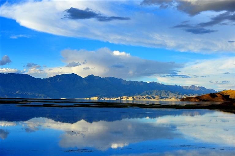 圖為日暮時分的班公湖。記者 溫凱 攝