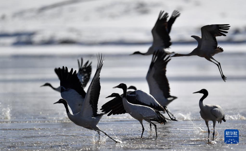 早春時節(jié),在西藏拉薩市林周縣境內(nèi)越冬的黑頸鶴開始為飛往藏北高原產(chǎn)蛋做準備。黑頸鶴是國家一級保護動物。據(jù)了解,近年來,西藏自治區(qū)多措并舉實施生態(tài)建設(shè)工程,黑頸鶴數(shù)量逐年遞增,目前西藏黑頸鶴數(shù)量超過萬只。