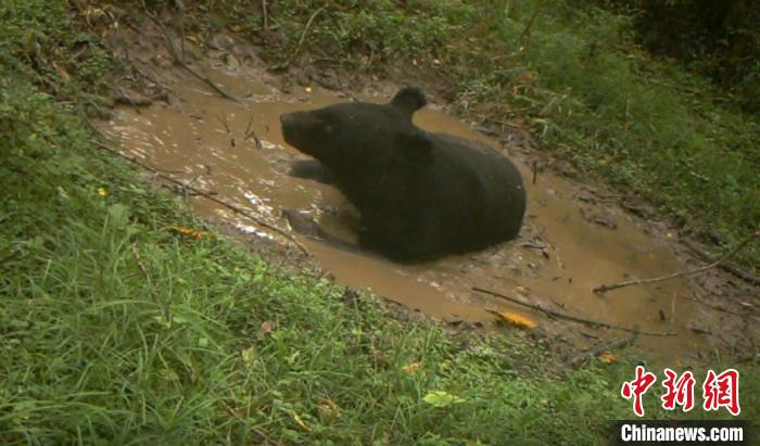 獨自洗澡的黑熊 寶興縣委宣傳部 供圖