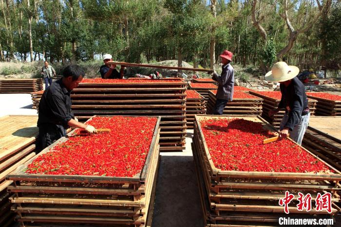 圖為都蘭縣枸杞采摘后進(jìn)行晾曬。(資料圖) 都蘭縣委宣傳部 供圖